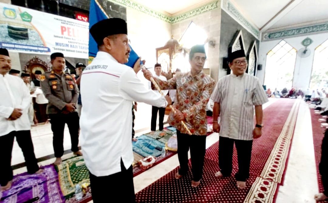 Wakil Bupati (Wabup) Kepulauan Selayar, Saiful Arif, SH melepas 109 (seratus sembilan) orang Jamaah Calon Haji (JCH) Kabupaten Kepulauan Selayar yang tergabung dalam kloter 2 Embarkasi Makassar, Minggu (21/5/2023) sore di Masjid Agung Al Umaraini, Benteng dengan ditandai penyerahan bendera kloter kepada Ketua Rombongan Jumriadi Thamrin.