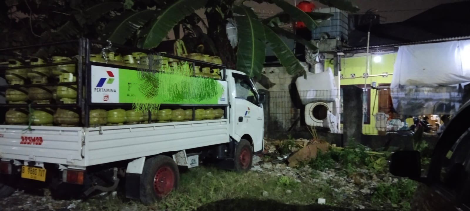 Terlihat mereka sibuk memindahkan Tabung Gas 3Kg yang dikirim dengan mobil terbuka bertuliskan 'AGEN LPG 3 KG BERSUBSIDI' dari Perusahaan TKMG yang katanya akan dibawa ke tempat praktik pengoplosan di wilayah Taruma Jaya, Kabupaten Bekasi.