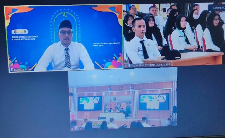 Bupati Sinjai Andi Seto Asapa (ASA) membuka secara resmi Pelatihan Dasar (latsar) CPNS Golongan III angkatan I dan II Pemerintah Kabupaten Sinjai secara virtual dari Ruang Kerjanya di Kantor Bupati Sinjai, Senin (22/5/2023).