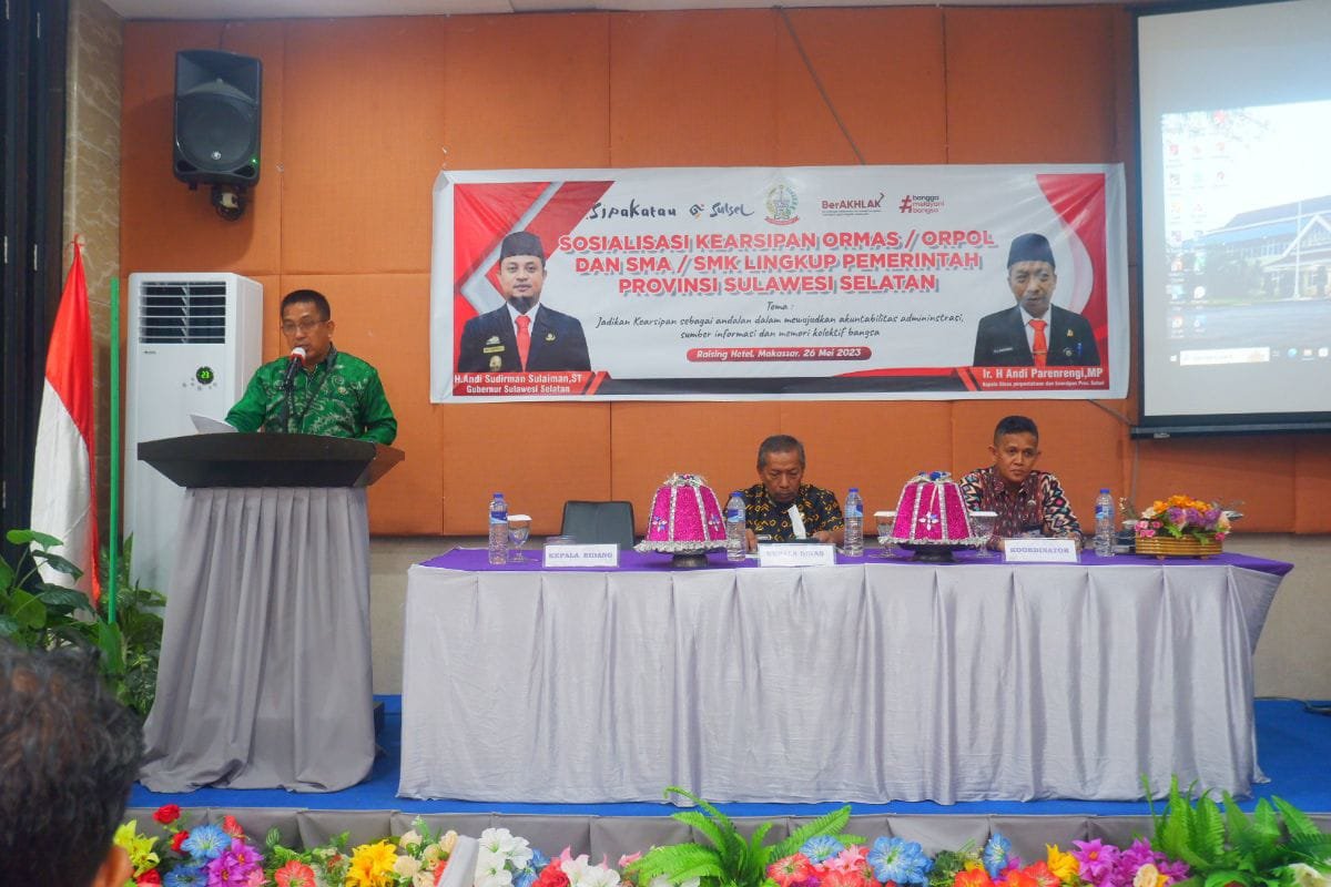 Ini dibuktikan dengan mengadakan acara Sosialisasi Kearsipan Ormas/ Orpol dan SMA/SMK Lingkup Pemerintah Provinsi Sulawesi Selatan, Jumat (26/5/2023) di Hotel Raising Jalan Racing Center Makassar.
