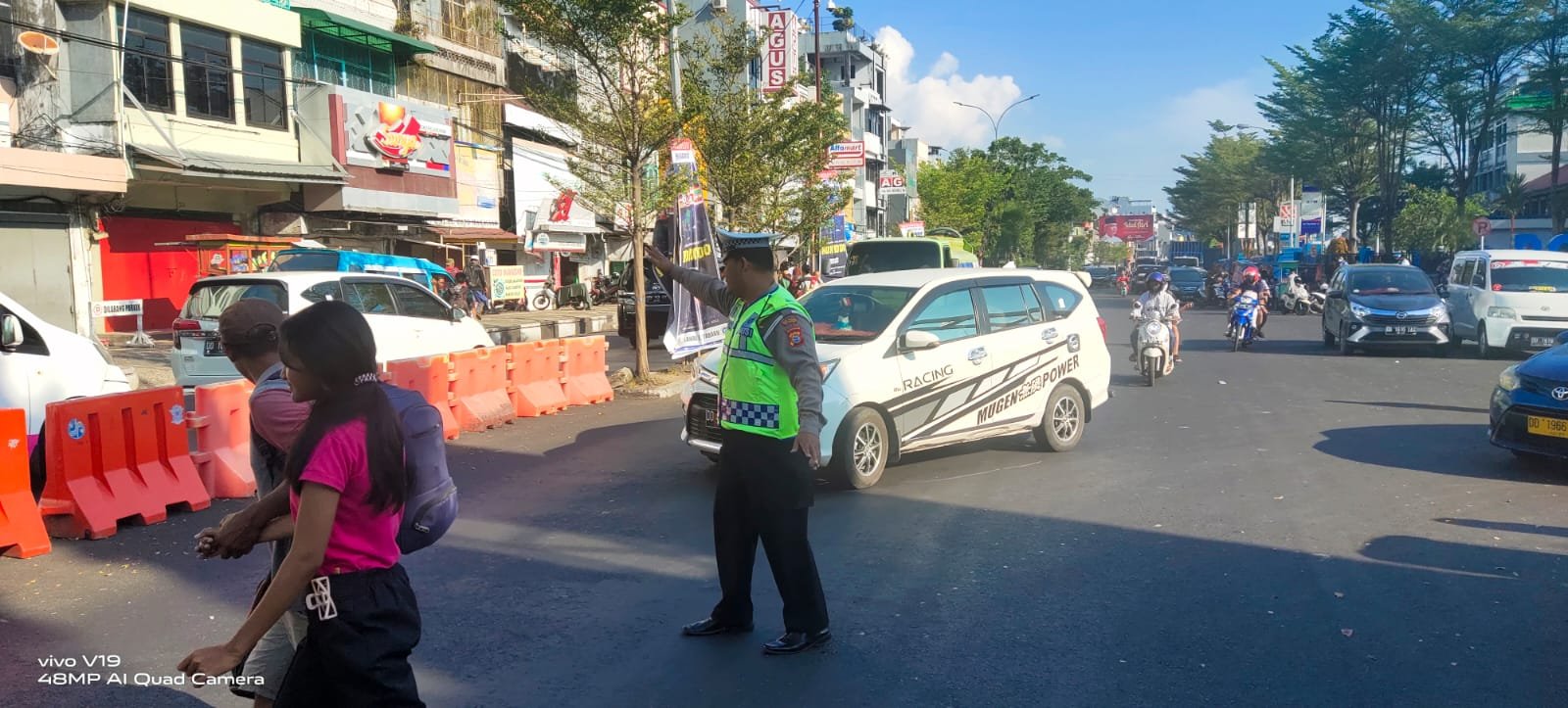 Wujud pelayanan Polri untuk masyarakat, guna kelancaran dan keamanan ketertiban berlalu lintas, Satlantas Polres Pelabuhan Makassar lakukan pengaturan di pintu masuk dan pintu keluar Pelabuhan Soekarno Hatta.