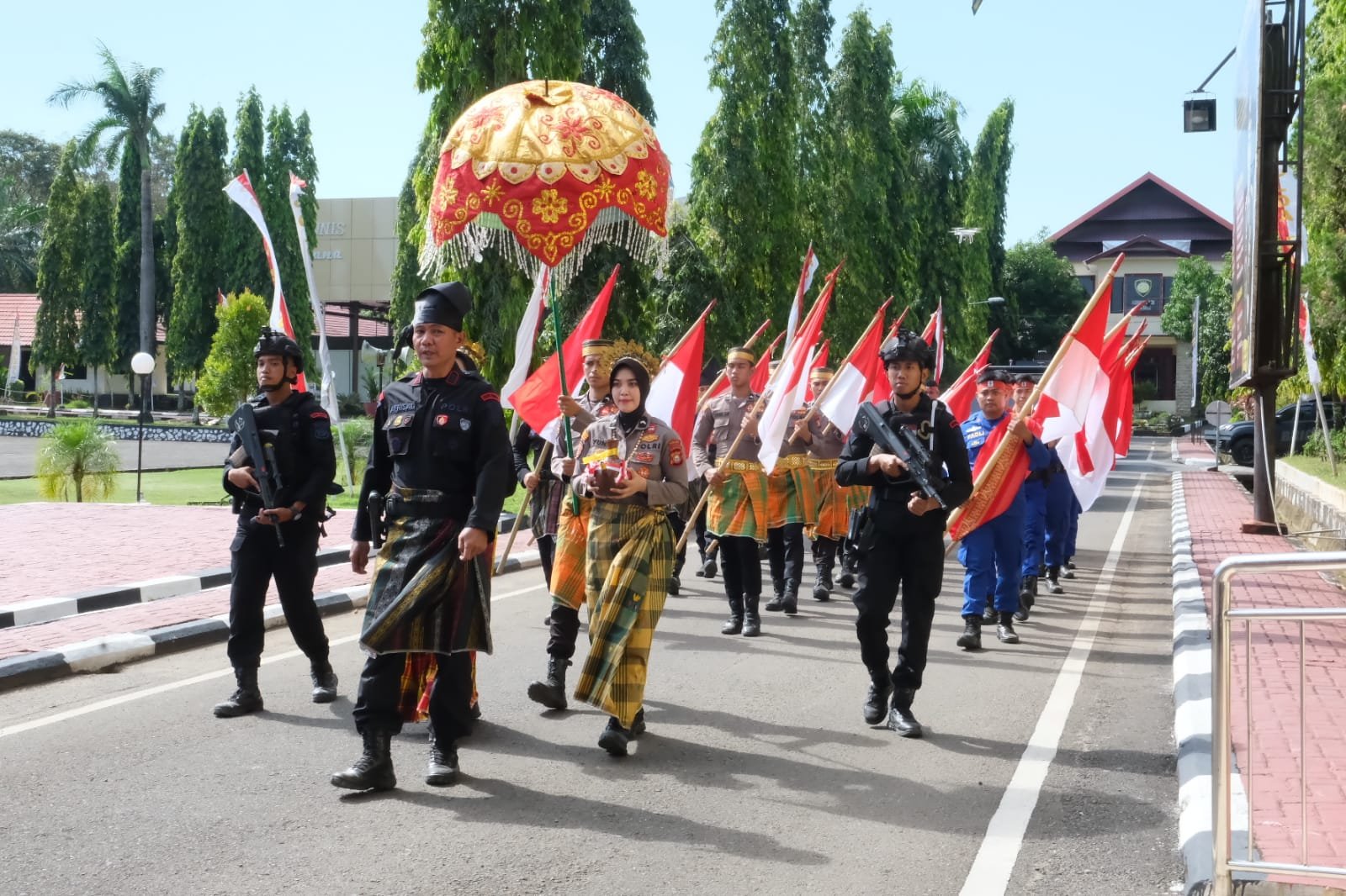 Polda Sulsel menggelar acara tradisi Penyerahan Air Suci untuk pencucian Pataka Polda Sulsel dan Panji-Panji Kepolisian. Kegiatan tersebut merupakan rangkaian dari kegiatan yang digelar Polda Sulsel dalam rangka Peringatan Hari Bhayangkara Ke-77 Tingkat Polda Sulsel.