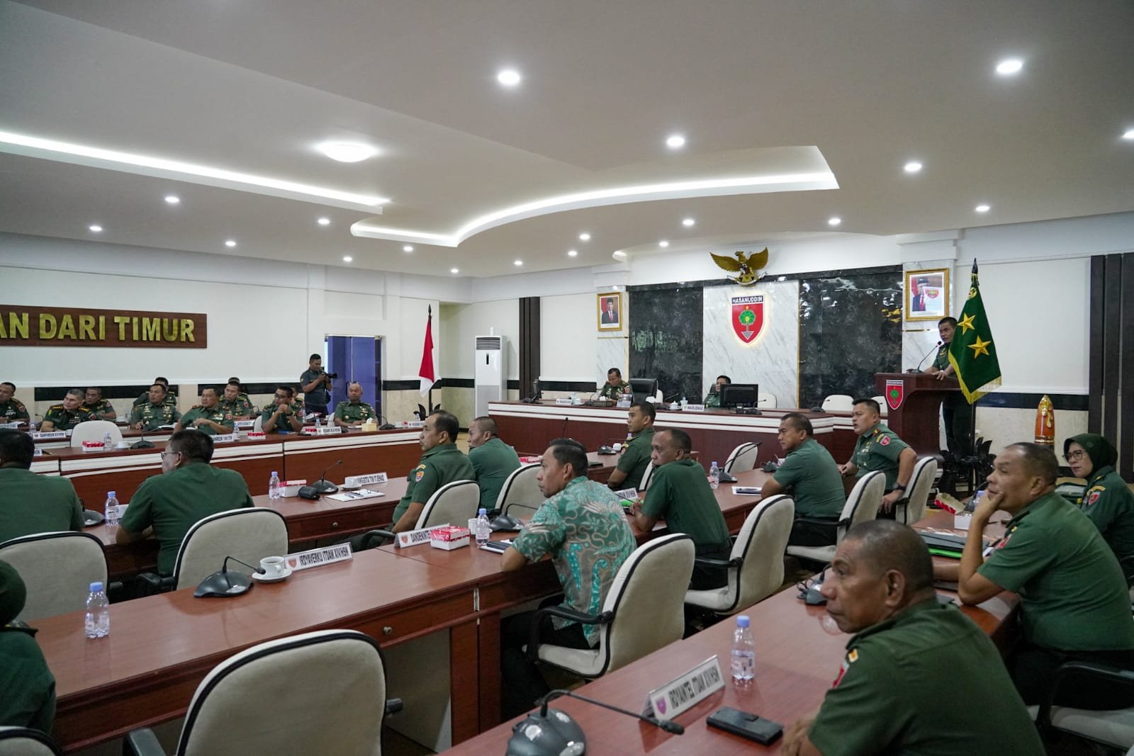 Pangdam XIV/Hasanuddin Mayjen TNI Dr. Totok Imam Santoso, SIP, S.Sos, M.Tr(Han) menutup Taklimat Akhir pelaksanaan kegiatan Pengawasan dan Pemeriksaan (Wasrik) Post Audit Itjenad TA 2023, bertempat di Ruang Bina Yudha (RBY) Makodam, Kota Makassar, Rabu (14/06/2023).