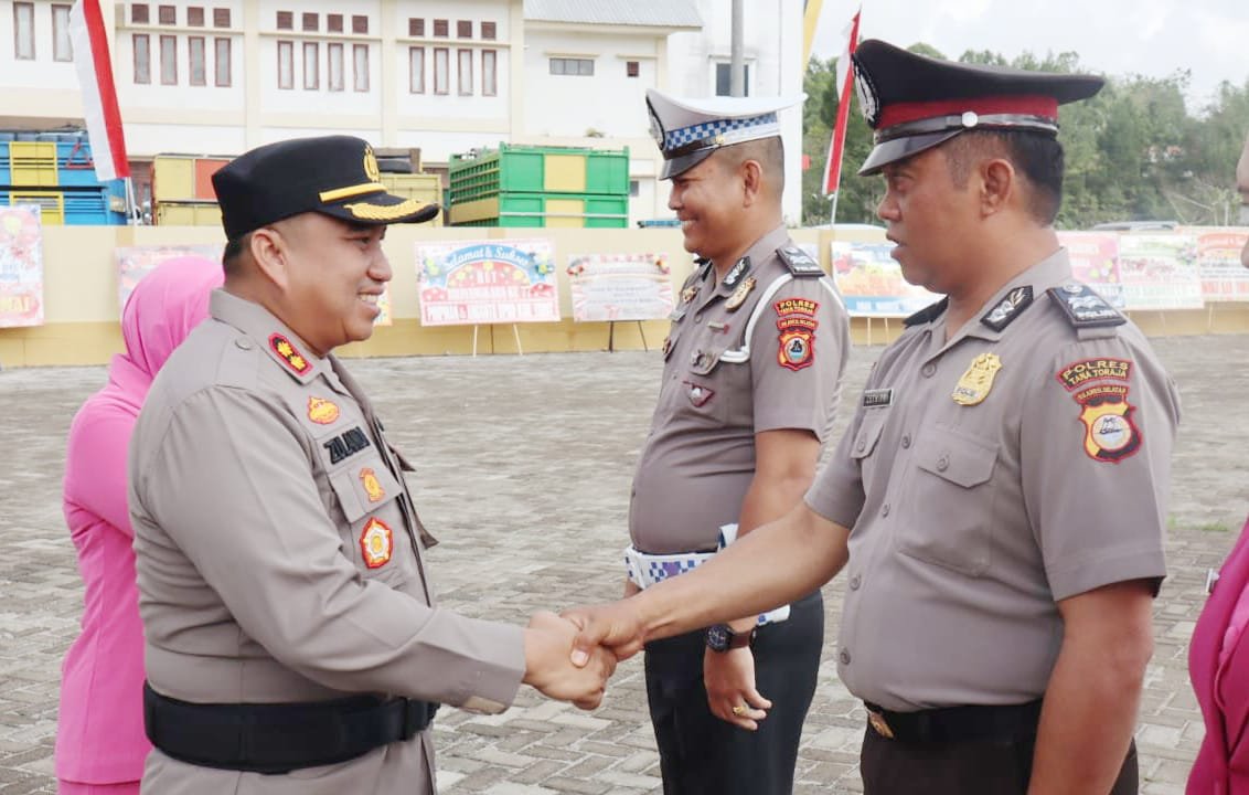 Kepolisian Resor (Polres) Toraja Utara Polda Sulsel menggelar Upacara Korps Raport atau kenaikan pangkat setingkat lebih tinggi yang dipimpin langsung Kapolres Toraja Utara AKBP Zulanda, di halaman Mapolres Toraja Utara, Panga’, Kecamatan Tondon, Kabupaten Toraja Utara, Senin (03/07/2023) pagi.
