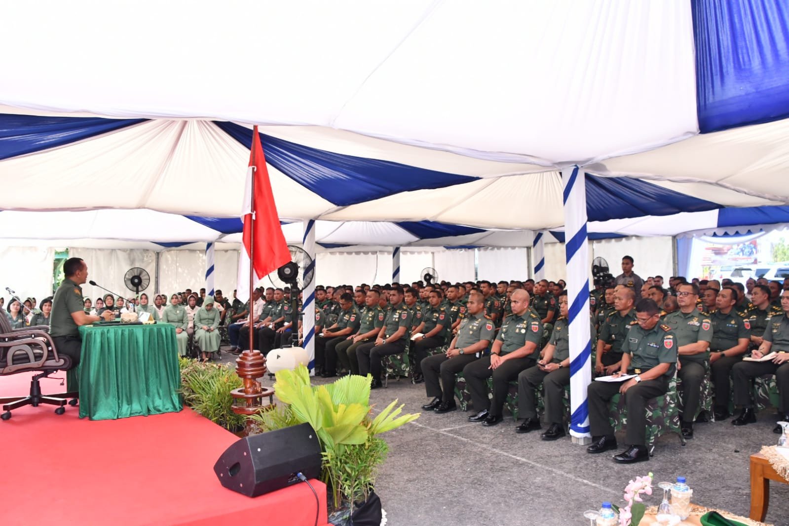Di lapangan Mako Denpom XIV/3 Kendari, Mayjen Totok memberikan pengarahan kepada seluruh prajuritnya baik kepada personel militer, PNS maupun Persit jajaran Korem 143/HO yang berada di wilayah Kota Kendari.