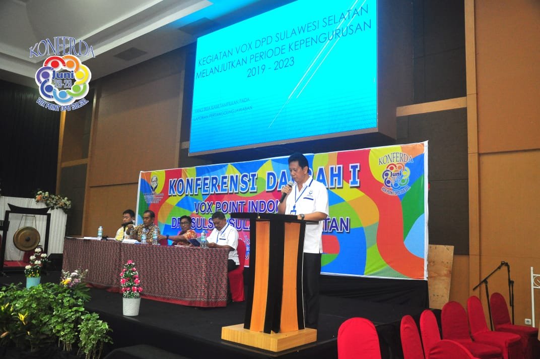 Vox Point Indonesia Dewan Pimpinan Daerah (DPD) Sulawesi Selatan menggelar Konferensi Daerah (Konferda), bertempat di Swiss-Bellinn Hotel, Panakukang, Kota Makassar.