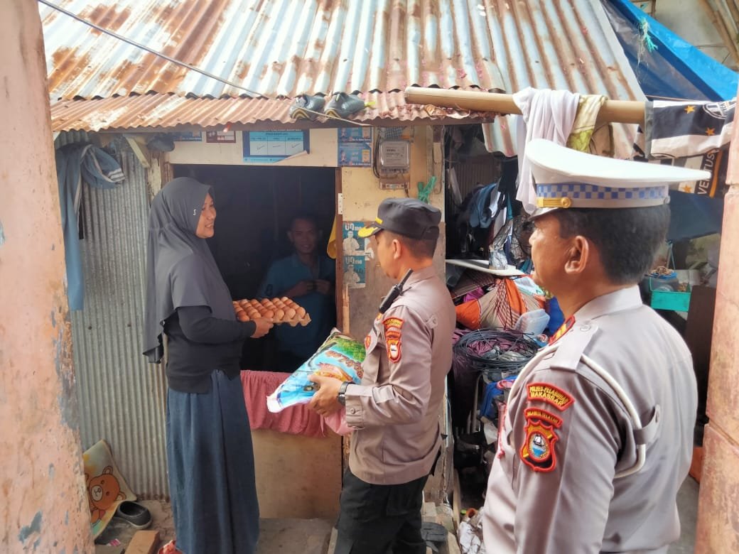 Polsek Wajo Polres Pelabuhan Makassar melaksanakan lenanganan program peduli stunting dengan menelusuri lorong dan gang sempit serta membagikan sembako, Selasa (11/07/2023).