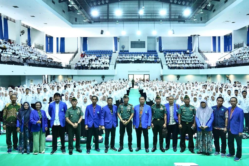 Pangdam XIV/Hasanuddin Mayjen TNI Dr. Totok Imam Santoso, SIP, S.Sos, M.Tr(Han) menjadi narasumber dalam Pengenalan Kehidupan Kampus Mahasiswa Baru (PKKMB) Poltekkes Kemenkes Makassar Tahun 2023, bertempat di Auditorium Tidung Poltekkes Makassar, Selasa (11/07/2023).