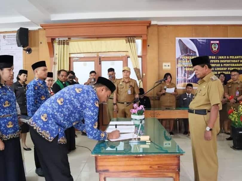 Bupati Mamasa H. Ramlan Badawi melantik aebanyak 5 orang Pejabat Fungsional PPUPD dan dirangkaikan dengan penyerahan SK 100% dan pengambilan sumpah ASN Formasi Tahun 2021 sebanyak 74 orang, Selasa (18/07/2023).
