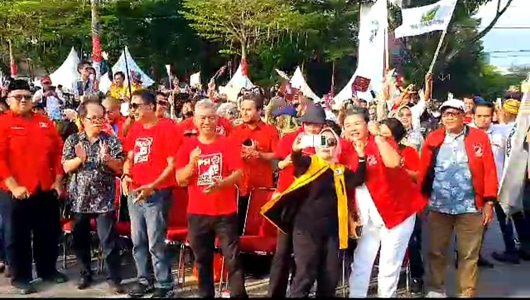 Ribuan peserta Kirap Pemilu 2024 yang terdiri dari utusan 18 partai politik, jajaran KPU dan Bawaslu Makassar serta instansi terkait, bersesakan memadati Anjungan Pantai Losari Makassar, Kamis (20/07/2023) sore.