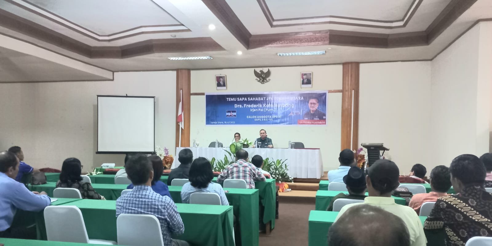 Bakal Caleg DPR RI, Irjen Pol. (Purn) Drs Frederik Kalalembang dari Partai Demokrat menemui sahabat-sahabatnya di Toraja Utara lewat pertemuan yang digelar dalam bingkai "Temu Sapa Sahabat" yang dihadiri ratusan orang sahabat, Selasa (18/7/2023) di Misiliana Hotel.