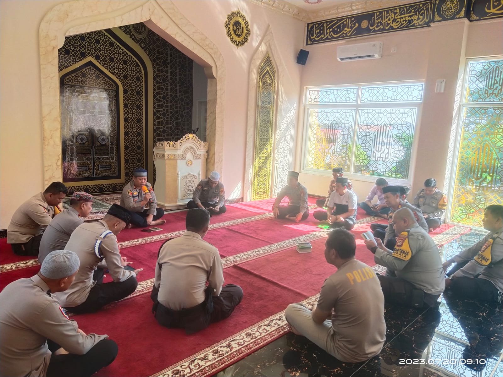 Rutinitas setiap hari Kamis usai pelaksanaan apel pagi, personel Polsek Manggala melanjutkan melaksanakan Pengajian Yasinan di Masjid Al-Amaan Mapolsek, Kamis (20/7/23) pagi.
