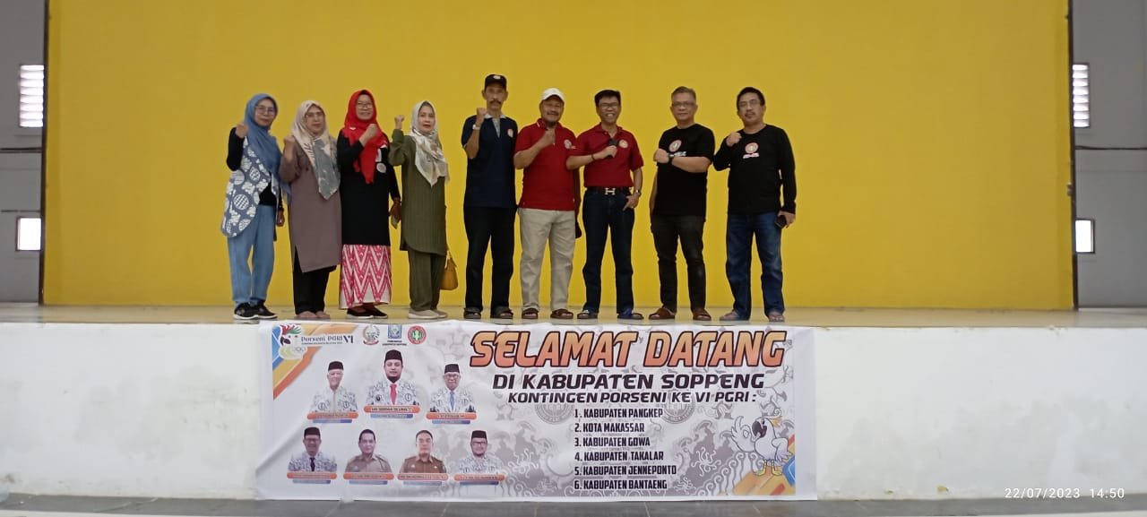Setibanya di Kabupaten Soppeng, rombongan Panitia Porseni PGRI ke-VI Sulsel dipimpin oleh Sekretaris Umum PGRI Sulsel Prof. Muhlis Madani langsung meninjau venue dan tempat pembukaan Porseni PGRI di Stadion H.Andi Wana Soppeng, Sabtu (22/7/2023).