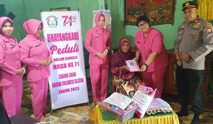 Menyambut Hari Kesatuan Gerak Bhayangkari (HKGB) ke-71 tahun 2023, Bhayangkari Cabang Sinjai melaksanakan Anjangsana ke rumah warakawuri Polri dan warga kurang mampu sekaligus memberikan bantuan sembako dan Tali Asih di wilayah Kecamatan Sinjai Utara, Kamis (27/7/2023).
