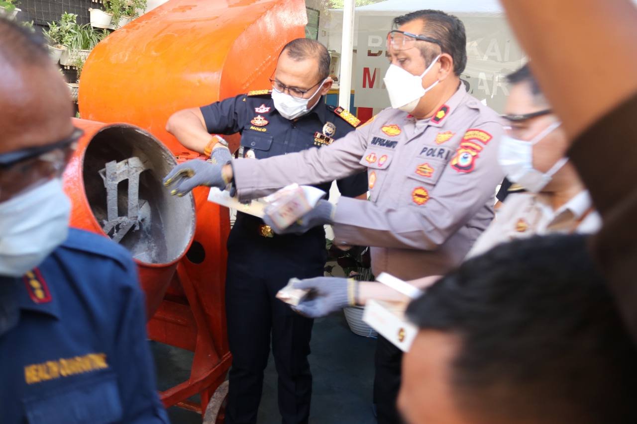 Wakapolres Pelabuhan Makassar Kompol Sugeng Suprijanto, S.Pd, MH menghadiri kegiatan Pemusnahan Barang Milik Negara (BMN) Hasil Penindakan dan Konferensi Pers oleh Kantor Pengawasan dan Pelayanan Bea dan Cukai Pelabuhan, Kamis (03/08/2023).