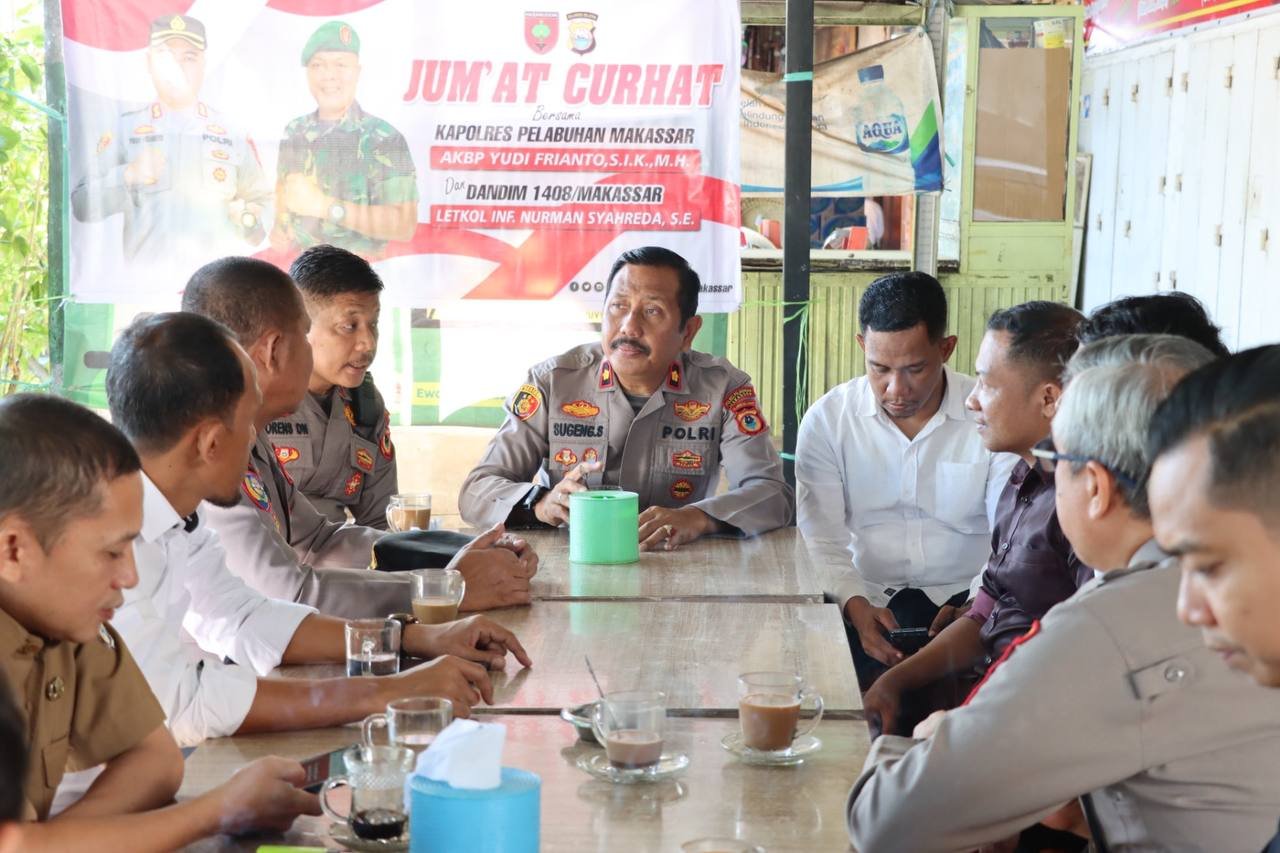 Dengarkan keluhan masyarakat secara langsung, Wakapolres Pelabuhan Makassar Kompol Sugeng Suprijanto kembali bertatap muka dengan masyarakat Kecamatan Wajo melalui program Jumat Curhat.