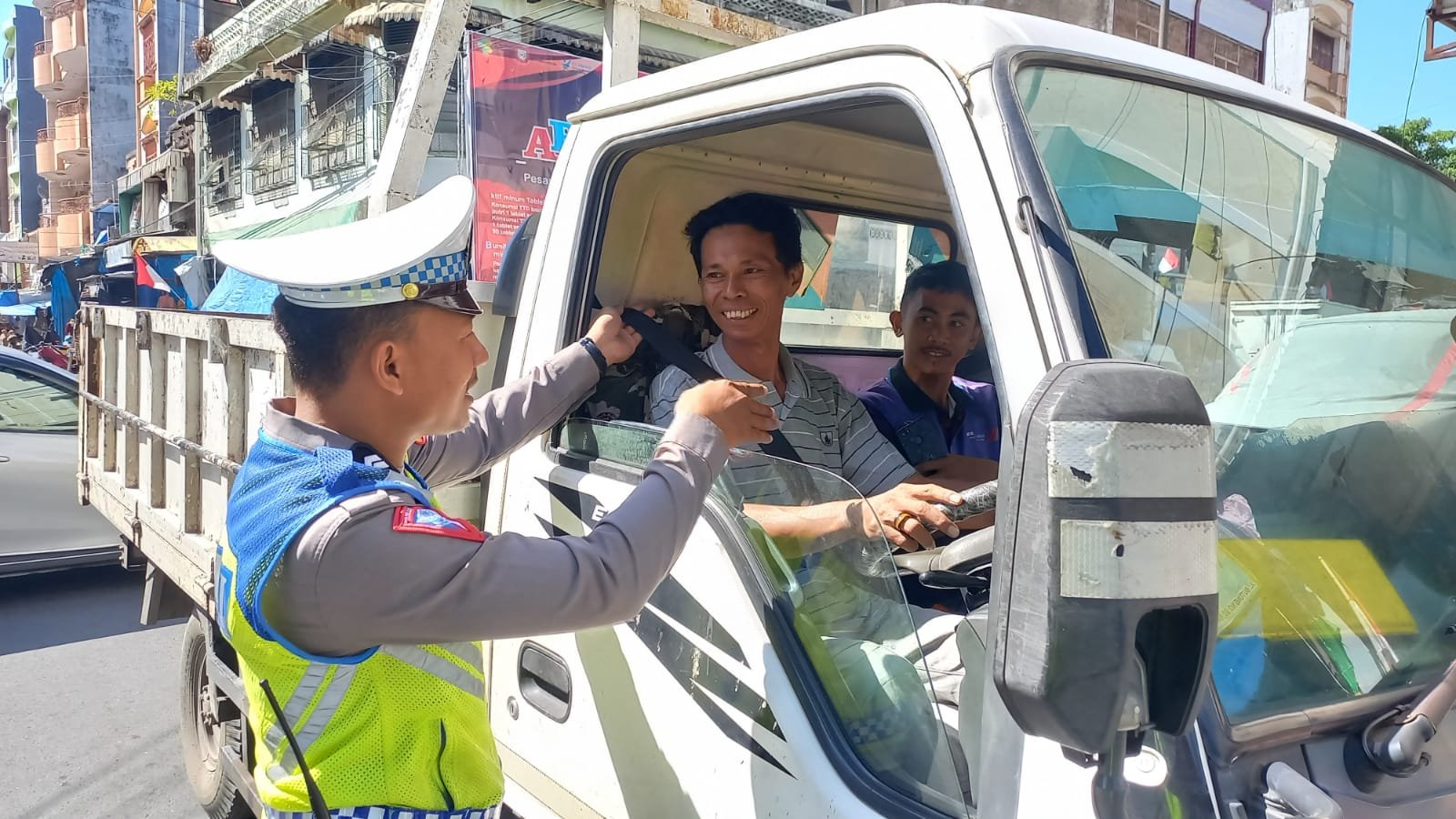 "Personel Unit Kamsel mengimbau masyarakat yang mengendarai kendaraan bermotor diminta untuk selalu meng-klik helm serta mengenakan safety belt dan selalu