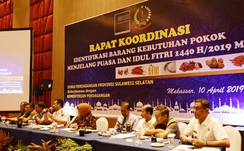 Dalam rangka mengantisipasi kebutuhan BBM dan LPG serta kebutuhan pokok lainnya, Dinas Perdagangan Provinsi Sulawesi Selatan (Sulsel) bekerjasama dengan Kementerian Perdagangan RI, menggelar Rapat Koordinasi (Rakor) Identifikasi bahan kebutuhan pokok jelang Ramadhan dan Idul Fitri 1440H Tahun 2019, bertempat di Eboni Ballroom Hotel Gammara Makassar, Rabu (10/04/2019).