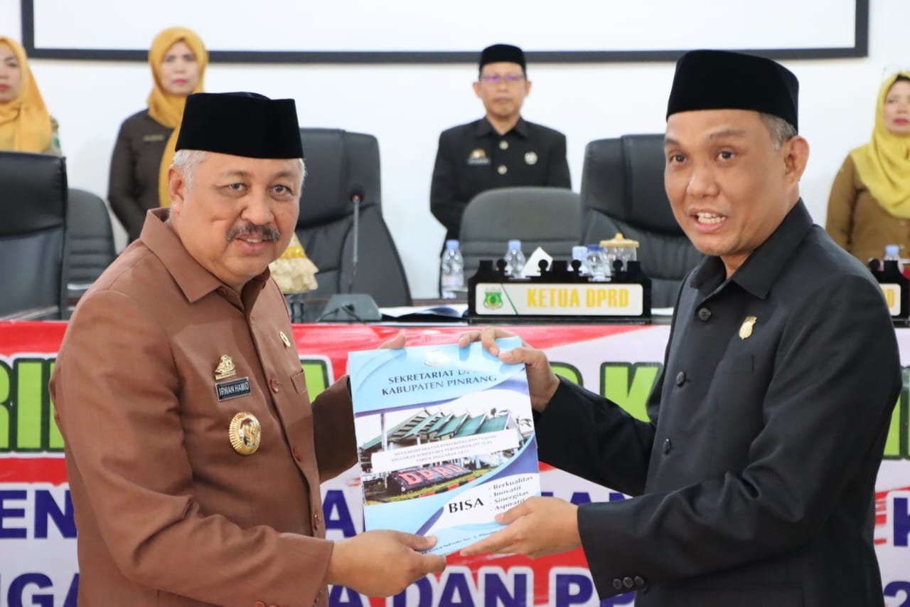 Sidang Paripurna DPRD dipimpin langsung Ketua DPRD Pinrang, Muhtadin yang juga dihadiri langsung Bupati Pinrang, Irwan Hamid beserta Wabup Alimin dan unsur Forkopimda.