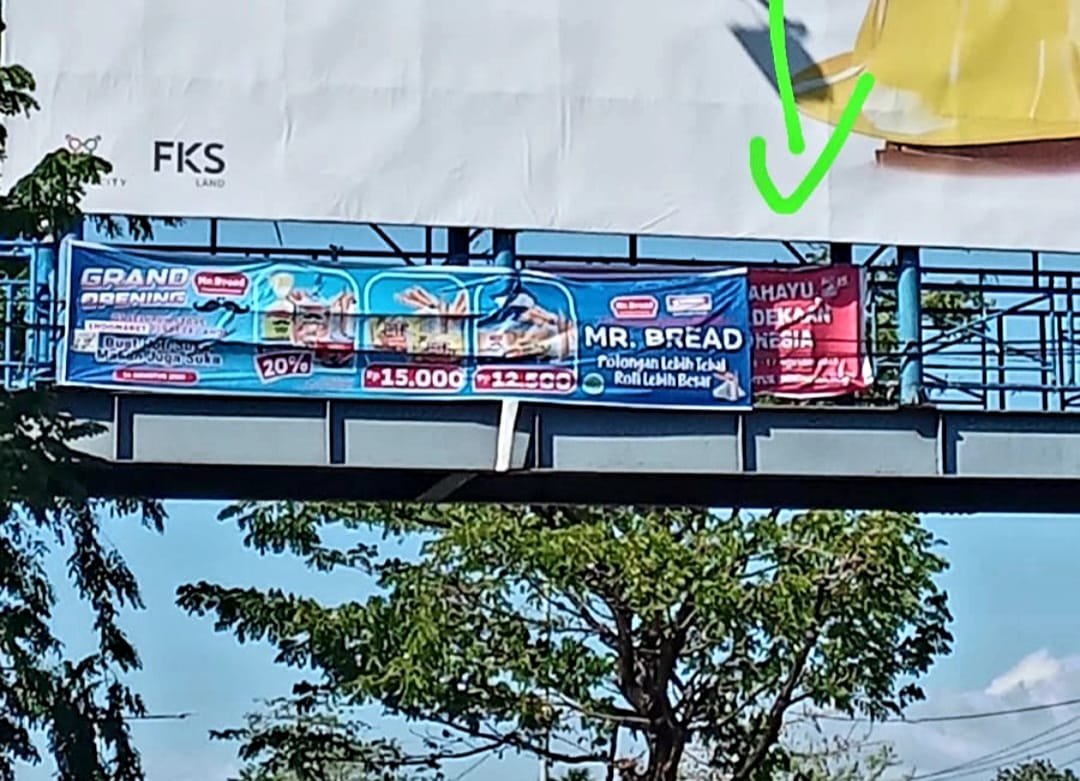 Pemasangan spanduk Promo Mr Bread Roti Indomaret yang dilakukan pihak perusahaan di atas jembatan penyeberangan depan Makassar Town Square (MToS) Jl. Perintis Kemerdekaan, Kota Makassar, dinilai sangat tidak beretika dan merugikan pihak lainnya.
