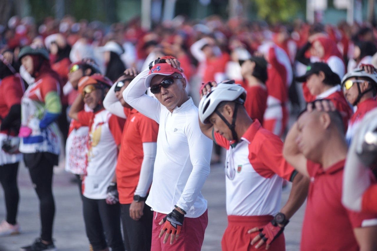 Ratusan sepeda dengan nuansa merah putih terlihat ramai memadati sepanjang jalan raya Kota Makassar. Dimana pada momen ini, Pangdam XIV/Hasanuddin Mayjen TNI Dr. Totok Imam Santoso, SIP, S.Sos, M.Tr(Han) dengan semangat nasionalisme, menggelar kegiatan sepeda santai, Selasa (15/08/2023).
