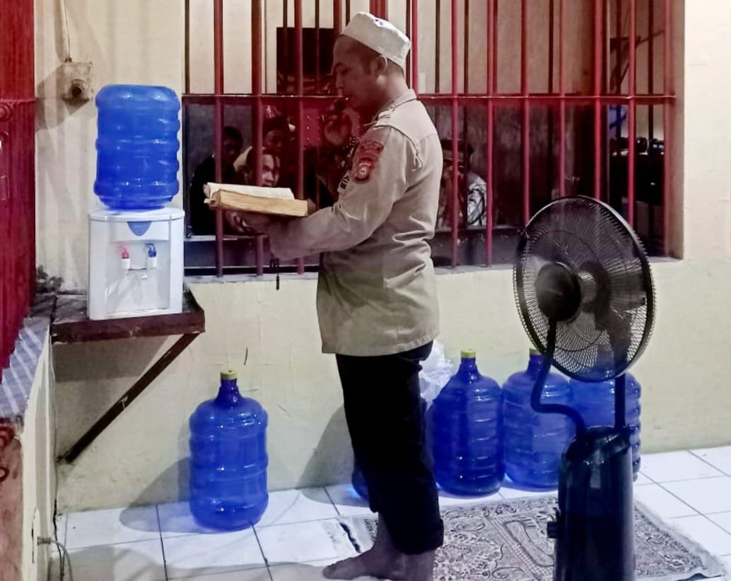 Seorang pria di depan kerumunan para tahanan itu, dengan sabar memandu para tahanan untuk bertaubat dan banyak-banyak mengingat Allah dan Rasulullah, beristighfar, bershalawat, Shalat sunnah taubat, itulah yang di lakukan Aipda Deddy Kurniawan ketika jadwal piketnya.