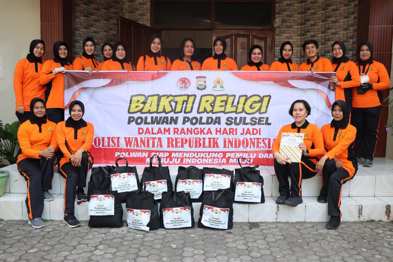 Polwan Polres Pelabuhan Makassar Polda Sulsel menggelar bakti religi dan bakti sosial dalam rangka menyambut HUT Polwan RI ke-75 serta upaya memupuk toleransi antar umat beragama, Rabu (16/08/2023).