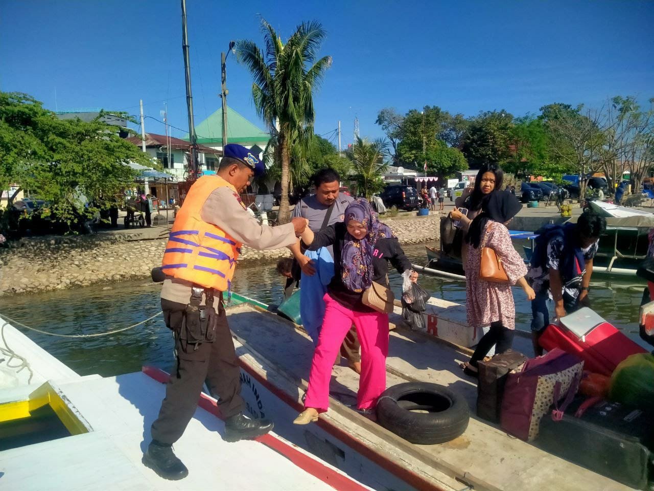 membantu menurunkan penumpang khususnya ibu-ibu dan anak-anak serta barang bawaan para penumpang yang akan turun dari kapal," ucap Kasi Humas Iptu Hasrul.