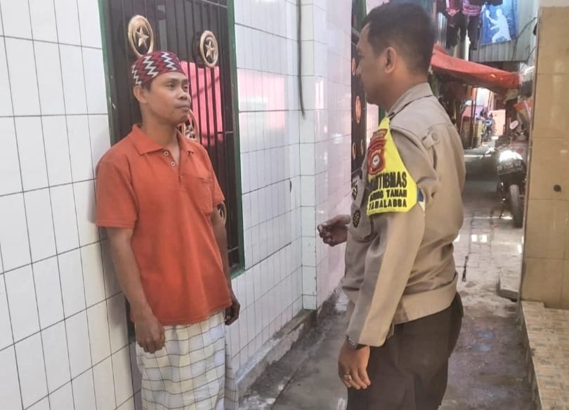 Untuk menjaga harkamtibmas, Bhabinkamtibmas Kelurahan Tamalabba Aipda Naharuddin menyelusuri lorong permukiman padat penduduk guna memberikan imbauan, Rabu (23/08/2023).