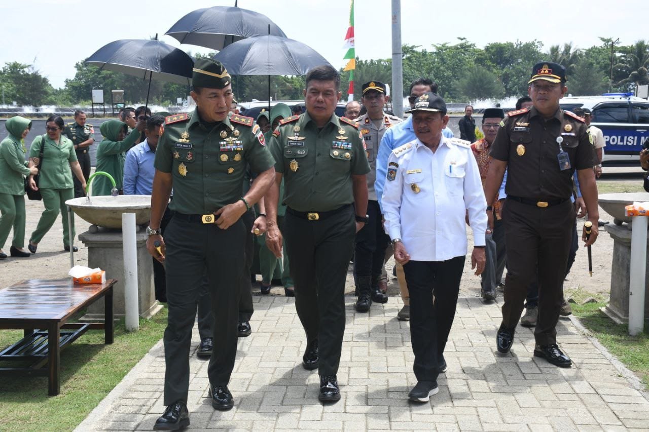 Di sela-sela agenda kunjungan kerjanya di wilayah Korem 142/Tatag, Pangdam XIV/Hasanuddin Mayjen TNI Dr. Totok Imam Santoso, SIP, S.Sos, M.Tr(Han) didampingi Ketua Persit Kartika Chandra Kirana (KCK) PD XIV/Hasanuddin Ny. Desi Totok Imam dan sejumlah Pejabat Utama (PJU) Kodam, melakukan peninjauan ke lokasi Tambak Udang Vaname PT Randomayang Tambak Lestari (RTL), terletak di Kabupaten Pasangkayu, Provinsi Sulbar, Rabu (23/08/2023).