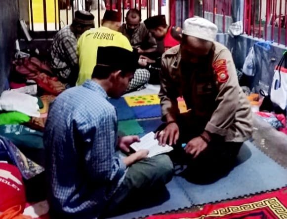 Aipda Deddy Kurniawan menyempatkan waktu bertugasnya dengan mengajari sejumlah tahanan membaca Al-Qur'an melalui Program Iqro’ untuk mengharap Keridhaan Allah SWT.