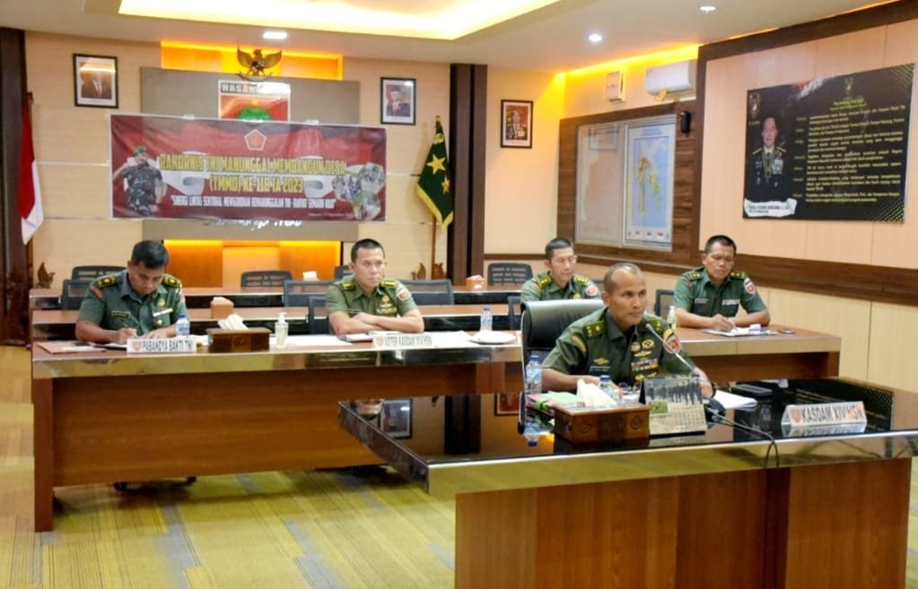 Kasdam XIV/Hasanuddin Brigjen TNI Mohammad Syech Ismed, SE, M.Han mewakili Pangdam, mengikuti Rapat Koordinasi Teknis (Rakornis) TNI Manunggal Membangun Desa (TMMD) Ke-118 TA 2023 secara virtual, yang dipimpin langsung oleh Aster Kasad Mayjen TNI Achmad Daniel Chardin, SE, M.Si bertempat di ruang Puskodalops Makodam, Kota Makassar, Selasa (12/09/2023).