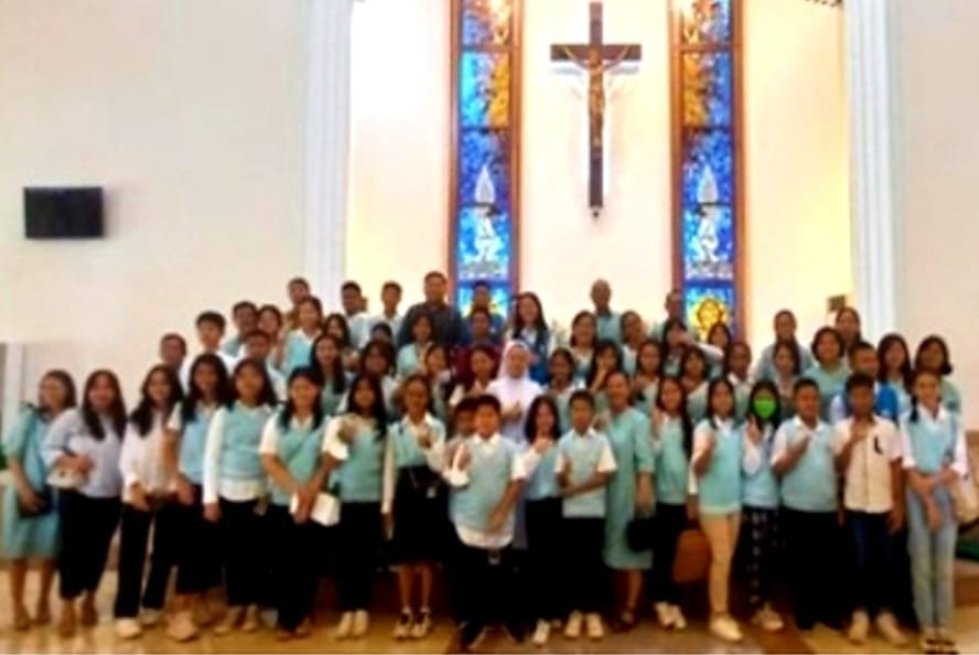 SMP Katolik Rajawali Makassar kembali hadir mengambil bagian dalam perayaan Ekaristi di Paroki Ratu Rosari Kare, Minggu (22/10/2023). Kegiatan ini merupakan program sekolah dalam bingkai “Road Show” pelayanan Gereja dimana para guru dan siswa-siswi terlibat langsung mengambil bagian dalam berbagai peran liturgi antara lain sebagai Lektor, Mazmur dan Paduan Suara.