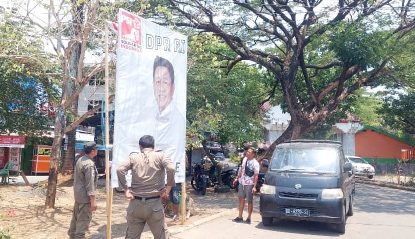 Baliho, banner dan spanduk yang merupakan alat peraga bagi para caleg dalam upaya memperkenalkan diri kepada masyarakat menjelang Pemilu 2024, dibongkar dan disita petugas karena dipandang melanggar aturan yang ditetapkan Pemerintah Kota Makassar bersama Bawaslu Kota Makassar.