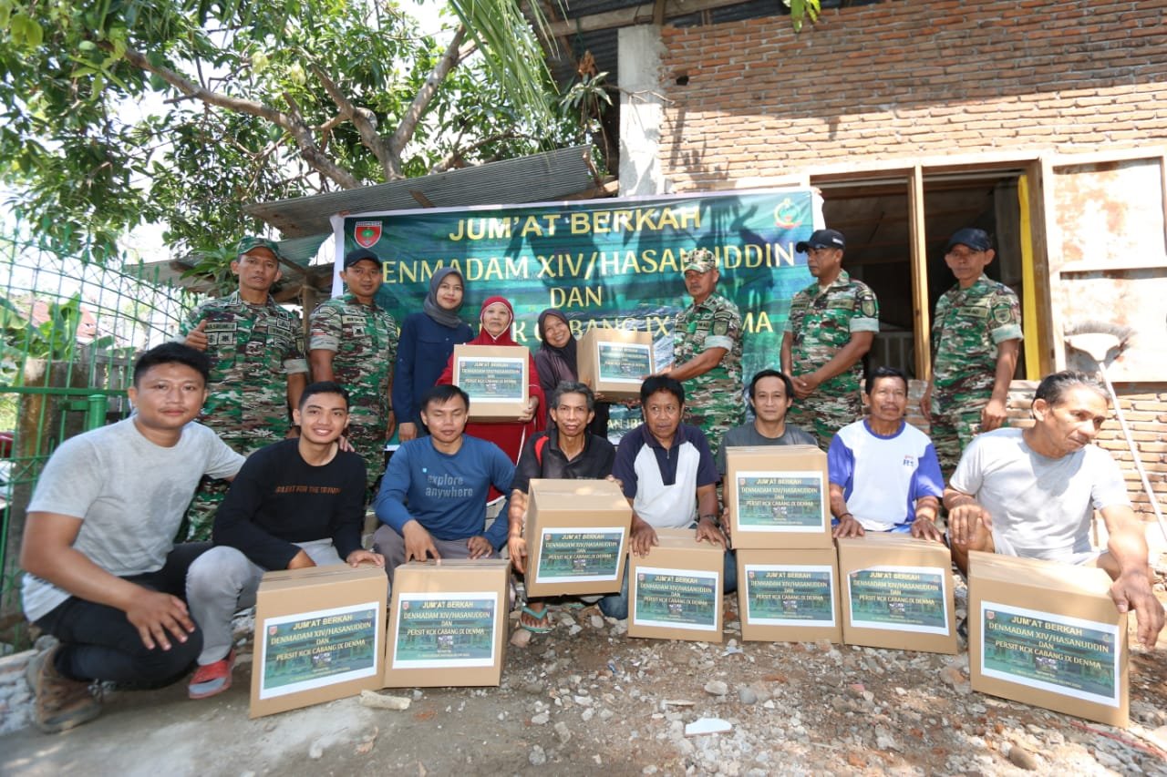Jumat berkah yang dipimpin oleh Dandenmadam Kolonel Inf M. Silwanus, SH, merupakan salah satu program unggulan Pangdam XIV/Hasanuddin Mayjen TNI Dr. Totok Imam Santoso, SIP, S.Sos, M.Tr (Han), sesuai Slogan 6 K Di Hati Kita, melalui program sedekah berupa pembagian sembako yang diberikan kepada masyarakat sekitar yang tidak mampu dengan tujuan bersedekah dan menyambung silaturahmi bersama masyarakat setempat.