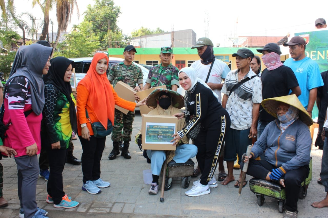 Wujud kepedulian kepada masyarakat, Detasemen Markas Kodam (Denmadam) XIV/Hasanuddin bersama anggota Persit Kartika Chandra Kirana Cabang IX Denma, menggelar Jumat berkah, bertempat di Jl. Kesadaran 3, Kota Makassar, Jumat (27/10/2023).