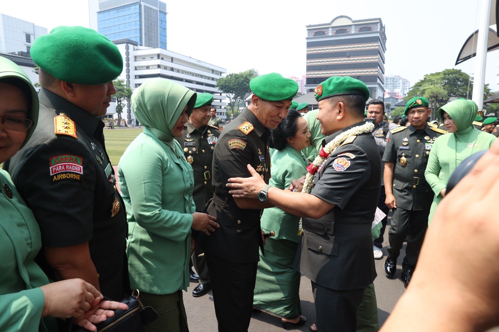 Pangdam XIV/Hasanuddin Mayjen TNI Dr. Totok Imam Santoso, SIP, S.Sos, M.Tr. (Han), didampingi Ketua Persit Kartika Chandra Kirana Ny. Desi Totok Imam, menghadiri upacara Serah Terima Jabatan (Sertijab) Kepala Staf Angkatan Darat (Kasad) dari Jenderal TNI Dr. Dudung Abdurachman, SE, MM, kepada Jenderal TNI Agus Subiyanto, SE, M.Si, bertempat di Lapangan Upacara Mabesad, Jakarta Pusat, Jumat (27/10/2023).