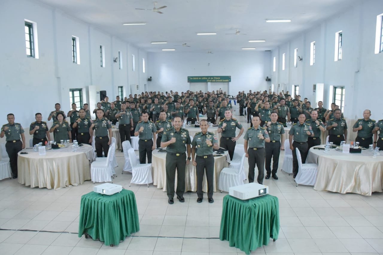 Prajurit Kodam XIV/Hasanuddin menerima Sosialisasi Doktrin Teritorial TNI Angkatan Darat TA 2023, dari Staf Teritorial TNI Angkatan Darat (Sterad) yang dipimpin oleh Wakil Asisten Teritorial (Waaster) Kasad Bid. Tahwil Komsos dan Bakti TNI Brigjen TNI Taufiq Shobri, M.Han., didampingi Kasdam XIV/Hasanuddin Brigjen TNI M. Syech Ismed, SE, M.Han, bertempat di Aula Makodim 1408/Makassar, Kamis (9/11/2023).