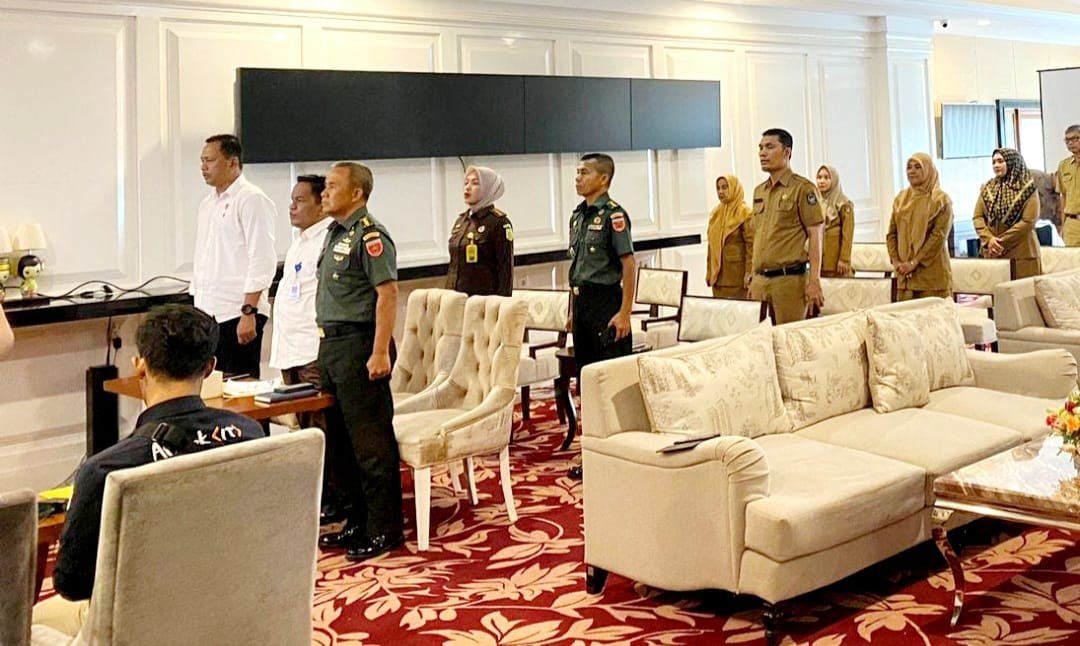 Wakili Pangdam XIV/Hasanuddin, Pamen Ahli Bidang Ideologi dan Politik Poksahli Pangdam, Kolonel Inf Fajar Nugraha mengikuti Rapat Koordinasi (Rakor) Pengendalian Inflasi Daerah secara virtual, bertempat di Baruga Lounge, Lantai 1 Gedung A Kantor Gubernur Sulsel, Kota Makassar, Senin (13/11/2023).