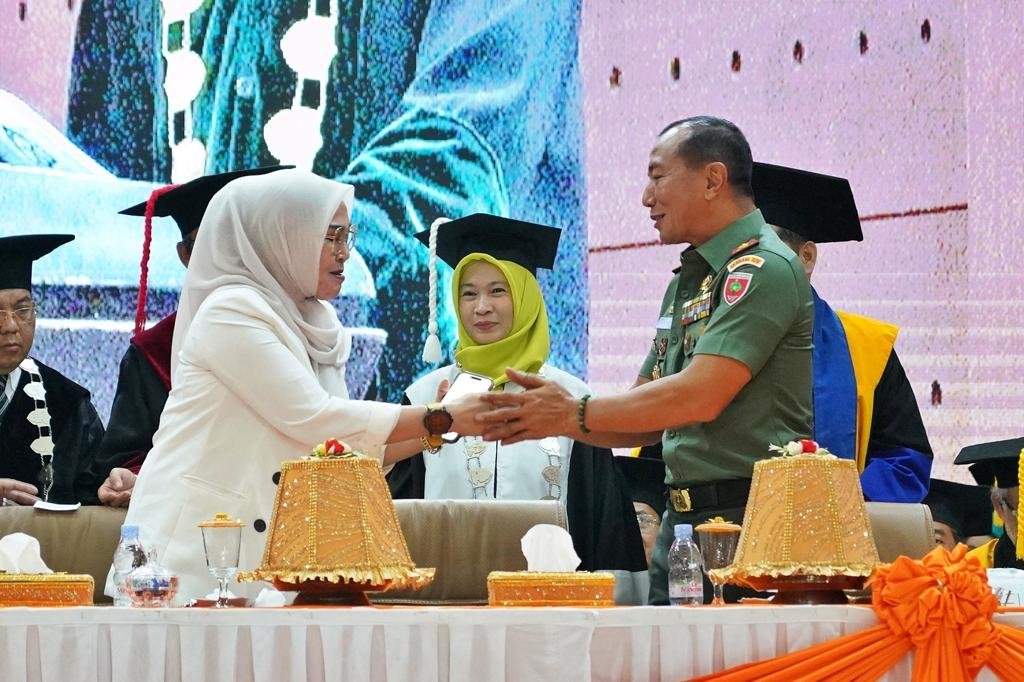 Pangdam XIV/Hasanuddin Mayjen TNI Dr. Totok Imam Santoso, SIP, S.Sos, M.Tr (Han), menghadiri sekaligus memberikan sambutan pada Upacara Sidang Senat Terbuka Luar Biasa Dalam Rangka Dies Natalis Universitas Islam Negeri (UIN ) Ke-58, bertempat di Auditorium Kampus 2 UIN Alauddin, Kota Makassar, Senin (13/11/2023).