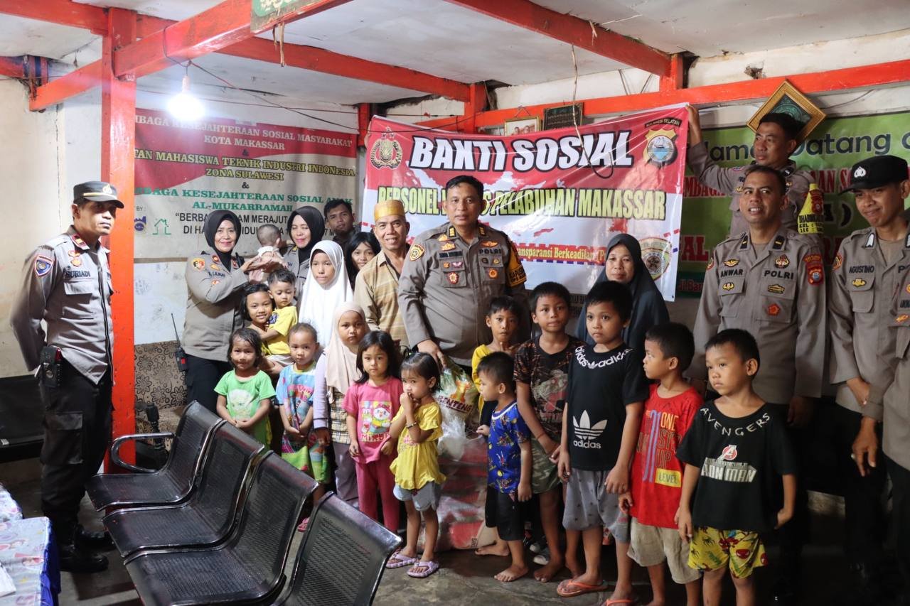 Polres Pelabuhan Makassar memberikan sembako kepada Panti Asuhan Al-Mukarramah yang terletak di jalan Barukang V Kelurahan Patingalloang Baru, Kecamatan Ujung Tanah, Kota Makassar.