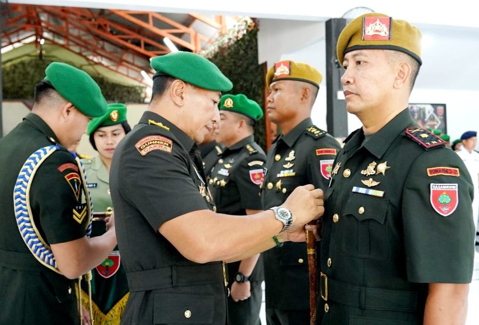 Pangdam XIV/Hasanuddin (Hsn) Mayjen TNI Dr. Totok Imam Santoso, SIP, S.Sos, M.Tr.(Han), memimpin acara Serah Terima Jabatan (Sert8kab) dua pejabat baru di lingkungan Kodam XIV/Hasanuddin, bertempat di Mako Zidam, Jln. Rajawali, Kota Makassar, Selasa (14/11/2023).