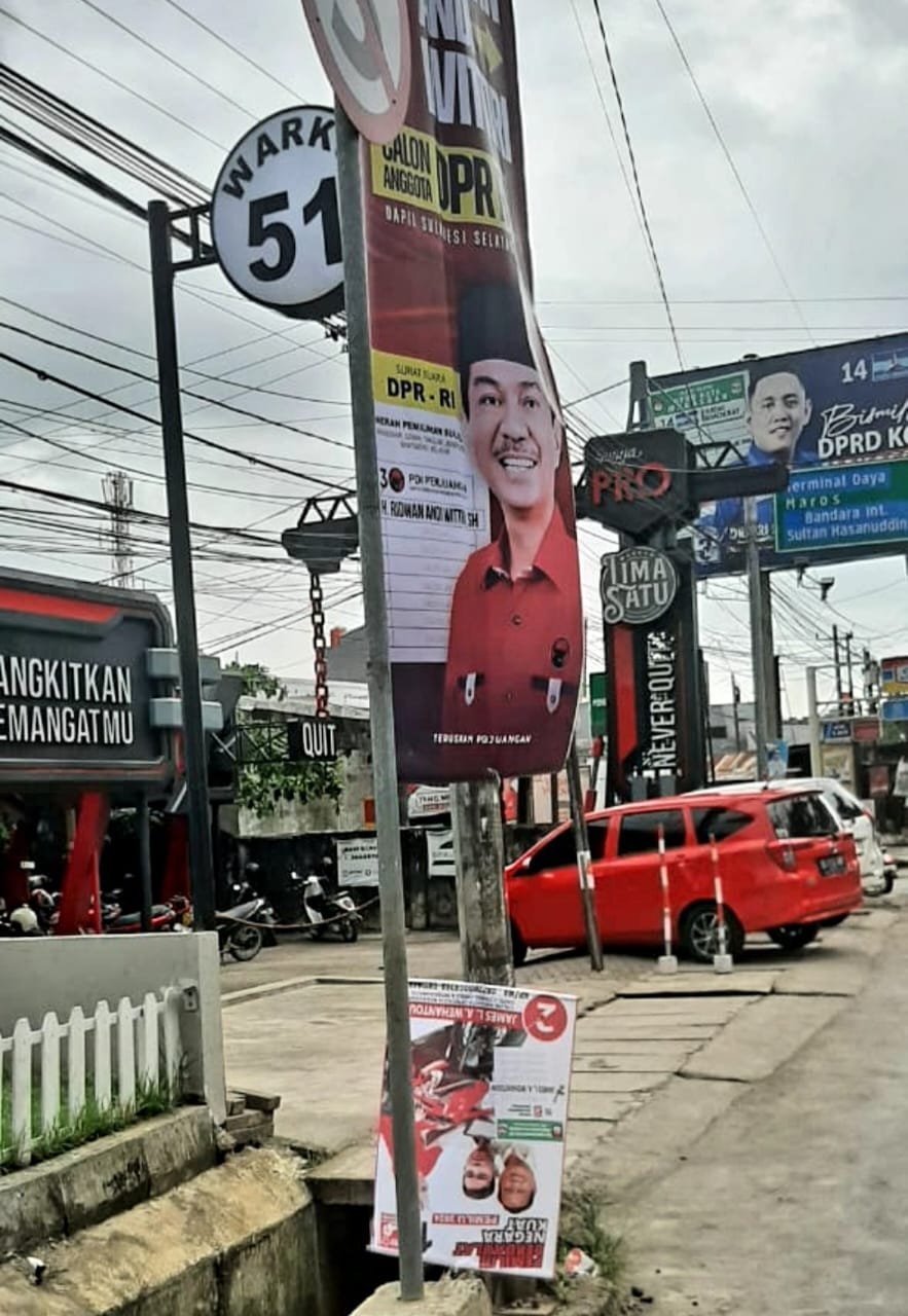 Sejumlah Alat Peraga Kampanye (APK) jenis banner panjang berukuran sekitar 1,00 x 2,50 meter milik Calon Legislatif (Caleg) DPR RI Dapil Sulsel 1, Andi Ridwan Wittiri yang diduga baru dipasang pada Kamis (11/01/2024) di sejumlah jalan dalam wilayah Kota Makassar, mendapat kecaman dan sorotan tajam dari sejumlah Caleg berbagai partai politik dan juga Calon DPD.