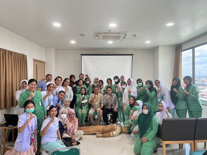 Pelatihan yang berlangsung di Ruang Pertemuan Lantai 6 RS Hermina ini dipandu langsung oleh dr. Zulkarnain Haroen Arrasjid, Sp.An-TI., MARS. Pakar dari Departemen Anestesiologi dan Terapi Intensif FK UMI ini mentransfer pengetahuan teknis kepada sekitar 40 peserta yang terdiri dari tenaga administrasi, petugas non-medis, jajaran manajemen, hingga pengunjung rumah sakit.