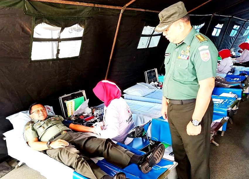 Dalam rangka menjaga ketersediaan darah di kota Makassar tetap stabil, ratusan prajurit dan PNS Kodam XIV Hasanuddin secara sukarela melaksanakan donor darah, bertempat di Lapangan Tenis Hasanuddin Jalan Sungai Tangka Makassar, Rabu (19/06/2019).
