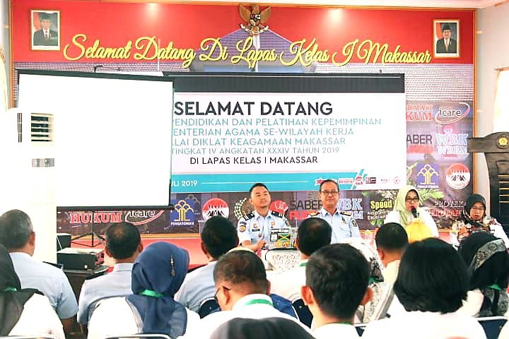 Peserta Pendidikan dan Pelatihan Kepemimpinan Kementerian Agama se-wilayah kerja Balai Diklat Keagamaan Makassar Tingkat IV angkatan XXXIV berkesempatan berkunjung ke Lembaga Pemasyarakatan (Lapas) Kelas I Makassar, Senin (15/07/2019) lalu.