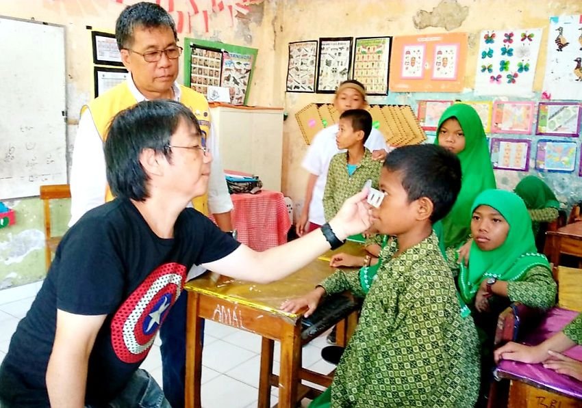 Dalam pemeriksaan mata di dua sekolah yang melibatkan tim medis dari Lions Club ini, para murid yang matanya mengalami minus langsung menerima pemberian kacamata gratis.