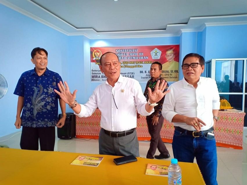 Empat pilar kebangsaan, yakni Pancasila sebagai Dasar dan Ideologi Negara, UUD NRI Tahun 1945 sebagai Konstitusi Negara, NKRI sebagai Bentuk Negara, dan Bhinneka Tunggal Ika sebagai Semboyan Negara, kembali disosialisasikan Anggota MPR RI, yang juga merupakan Anggota DPD RI, Dr. H. Ajeip Padindang, SE, MM, di Kampus STIE Wira Bhakti Makassar, beberapa waktu lalu.