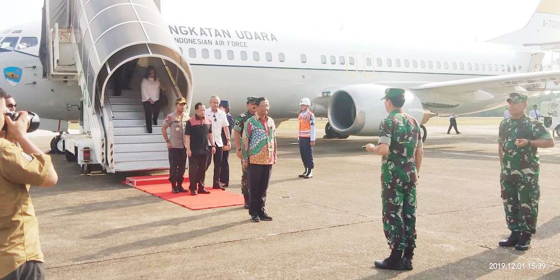 Menkopolhukam Prof Dr Mohammad Mahfud MD, SH, SU, MIP, Mendagri Jenderal Pol (Purn) Prof Drs H. Muhammad Tito Karnavian, MA, PhD, Panglima TNI Marsekal TNI Dr (HC) Hadi Tjahjanto, SIP, dan Kapolri Jenderal Pol Idham Azis beserta rombongannya masing-masing, tiba dan transit di Lanud Sultan Hasanuddin Makassar, Minggu (01/12/2019) sore sekitar pukul 15.28 Wita.