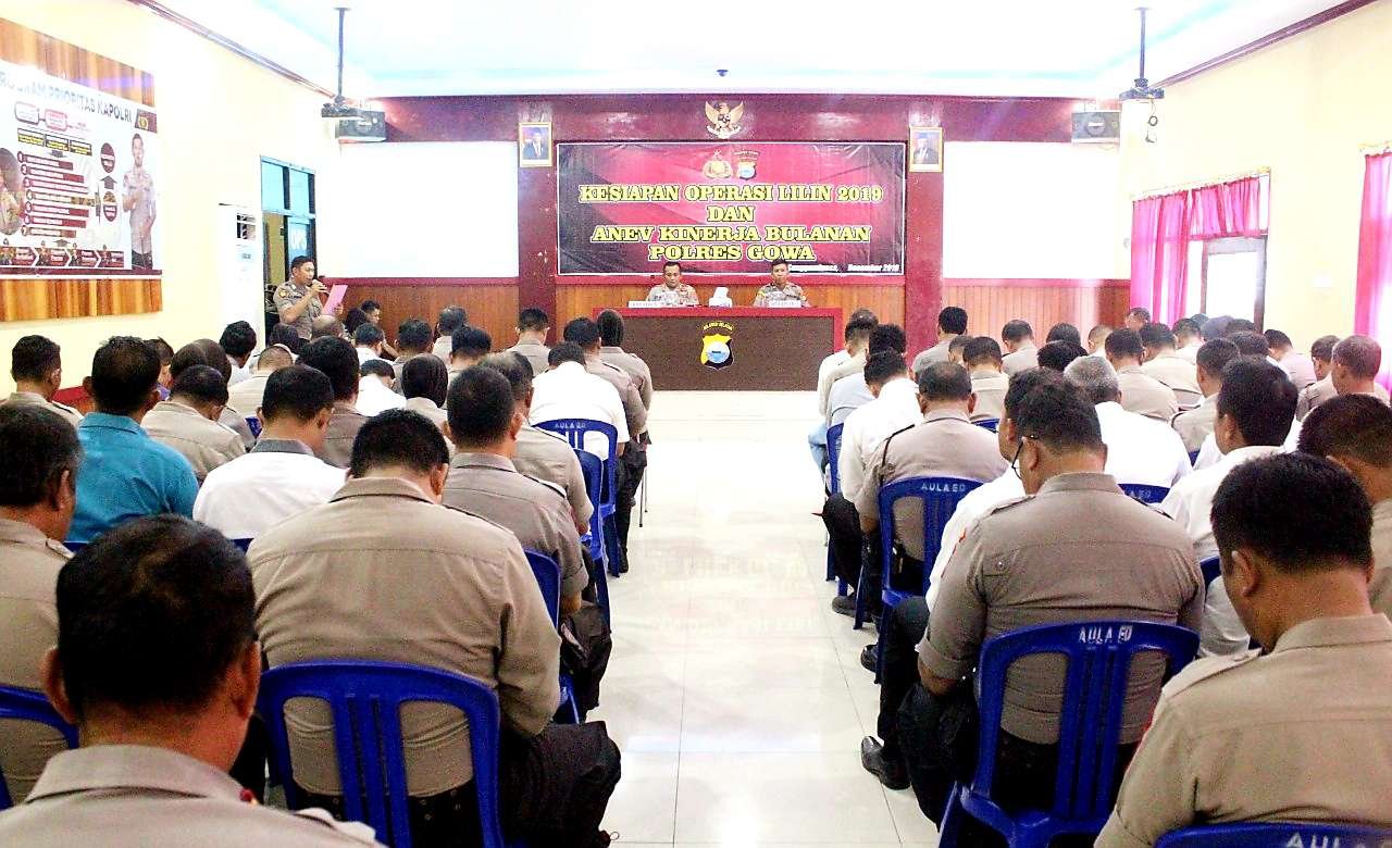 Polres Gowa menggelar Rapat Koordinasi pelaksanaan Operasi Lilin 2019 di Aula Endra Dharmalaksana Mapolres Gowa, Rabu (11/12/2019).